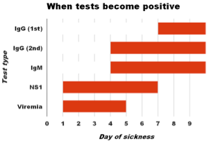 A. Blood tests and clinical findings can determine if a person is infected. Our Lab is the first in the north cost to provide the early diagnosis test NS1 Ag .